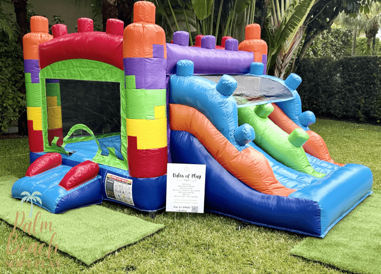 - OCCUPANCY: A maximum of 5-6 kids of equal size at one time for bounce houses, and 1 person at a time for slides is what most inflatable manufacturers recommend.