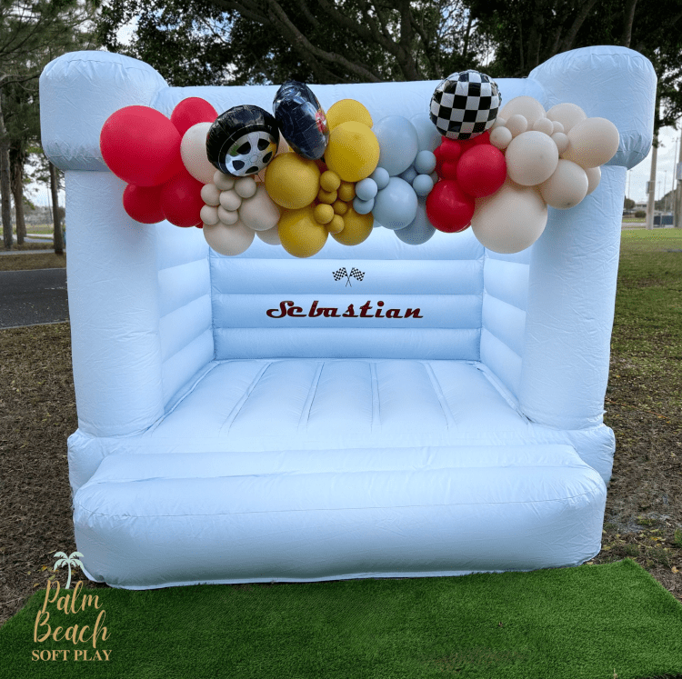 To keep kids comfortable on hot days, we suggest wearing socks and setting up in the shade — our bounce houses are open on top!