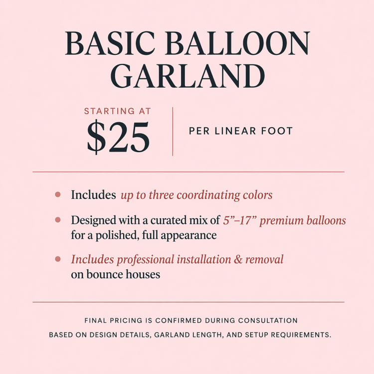 Personalized Decals (Pricing Varies)Pastel Orange 10x10:Personalized Decals (Pricing Varies)1Dropdown03025685_28736310000 Basic Balloon Garland (Pricing Varies)Pastel Orange 10x10:Basic Balloon Garland (Pricing Varies)1Dropdown03025685_28737090000 Premium Balloon Garland (Pricing Varies)Pastel Orange 10x10:Premium Balloon Garland (Pricing Varies)1Dropdown03025685_28737210000